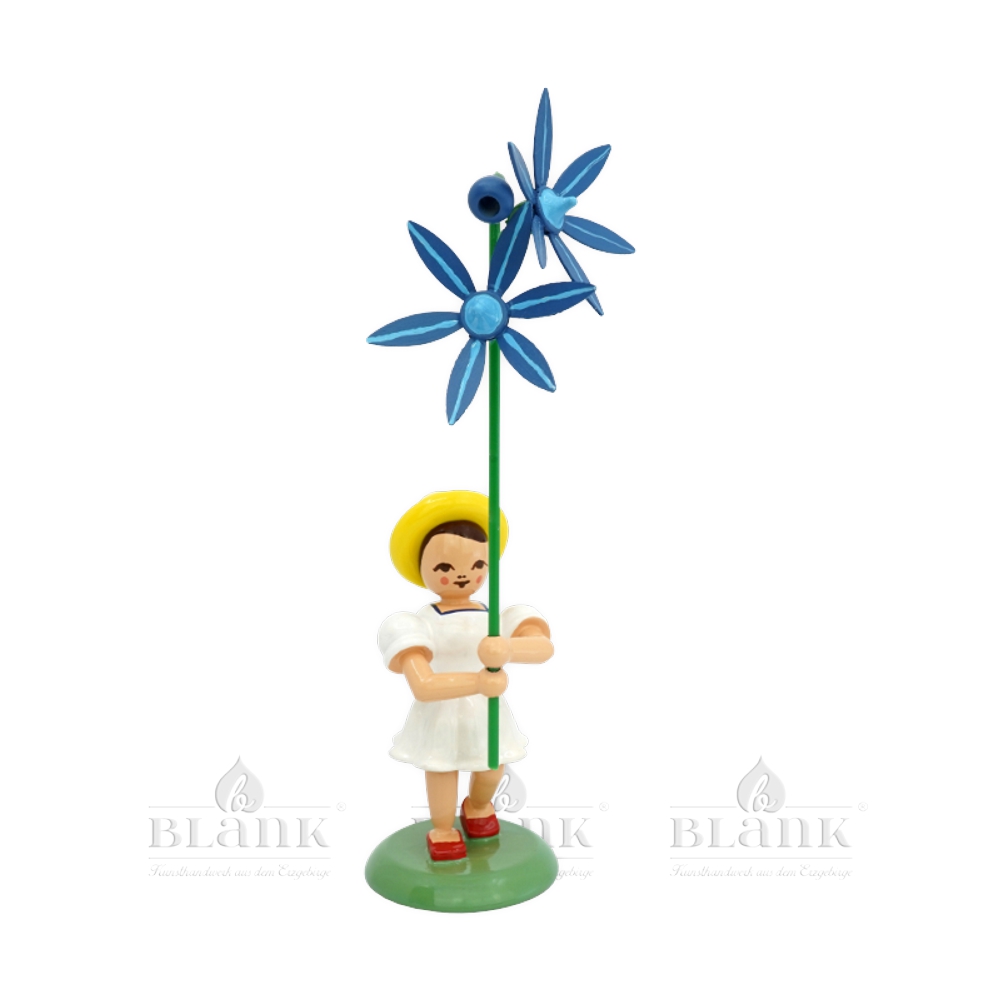 Dieses charmante Blumenkind aus dem Hause Blank Kunsthandwerk bringt die lebendige Farbenpracht des Frühlings direkt in Ihre Wohnräume. Die erfahrenen Kunsthandwerker aus Grünhainichen im Erzgebirge fertigen diese Figur mit höchster Präzision sowie viel Liebe zum Detail. Bei dieser Ausführung setzen sie auf eine handbemalte Gestaltung, welche die fröhliche Ausstrahlung der Figur perfekt unterstreicht. Ein freundliches Gesicht mit dunklen Augen und einem sanften Lächeln blickt den Betrachter unter dem hellen, strohgelben Sonnenhut hervor an. Die harmonische Farbwahl verleiht dem Blumenkind eine wunderbare Frische sowie eine herzliche Eleganz, die in jeder Dekoration sofort ins Auge fällt.