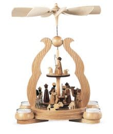 Die symbolträchtigen Heiligen Drei Könige mit ihren prächtigen Gaben dürfen selbstverständlich auch nicht fehlen und zieren die majestätische Pyramide mit ihrer Anmut und Pracht.