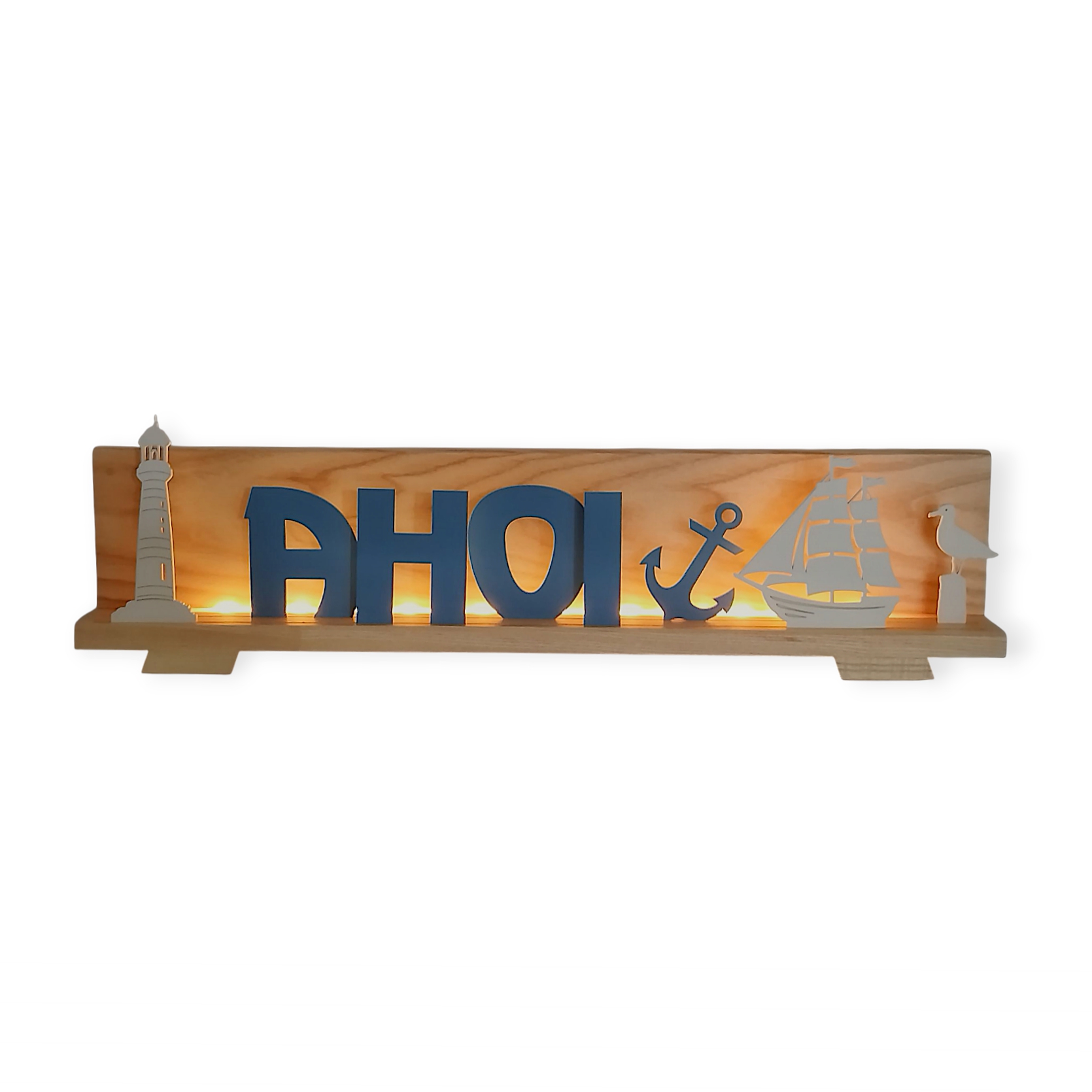 Die wahre Stärke des Sockels liegt in seiner Wandelbarkeit. Er ist mit einer integrierten LED-Beleuchtung ausgestattet, die eine warme und stimmungsvolle Lichtquelle bietet. Diese Lichterreihe ist so platziert, dass sie die darauf gestellten Figuren von unten beleuchtet und ihnen eine besondere Ausstrahlung verleiht.