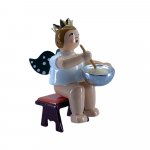 Dieser kleine Engel mit Teigschüssel, sitzend mit Krone rührt Teig in seiner Schüssel mit viel Laune und sorgt so für strahlende Gesichter und guter Stimmung.