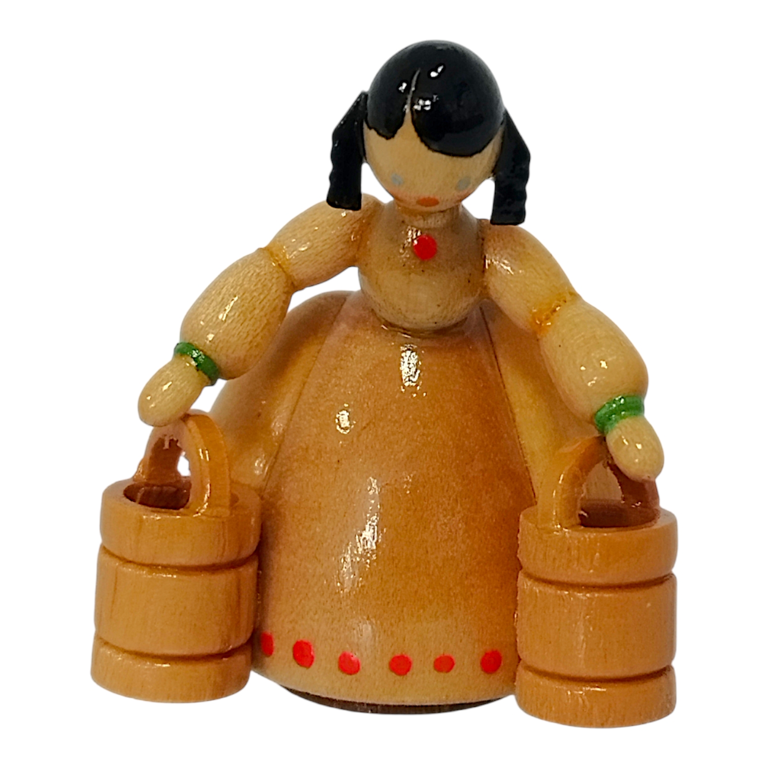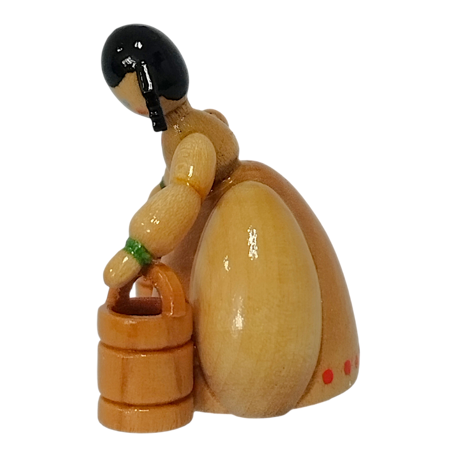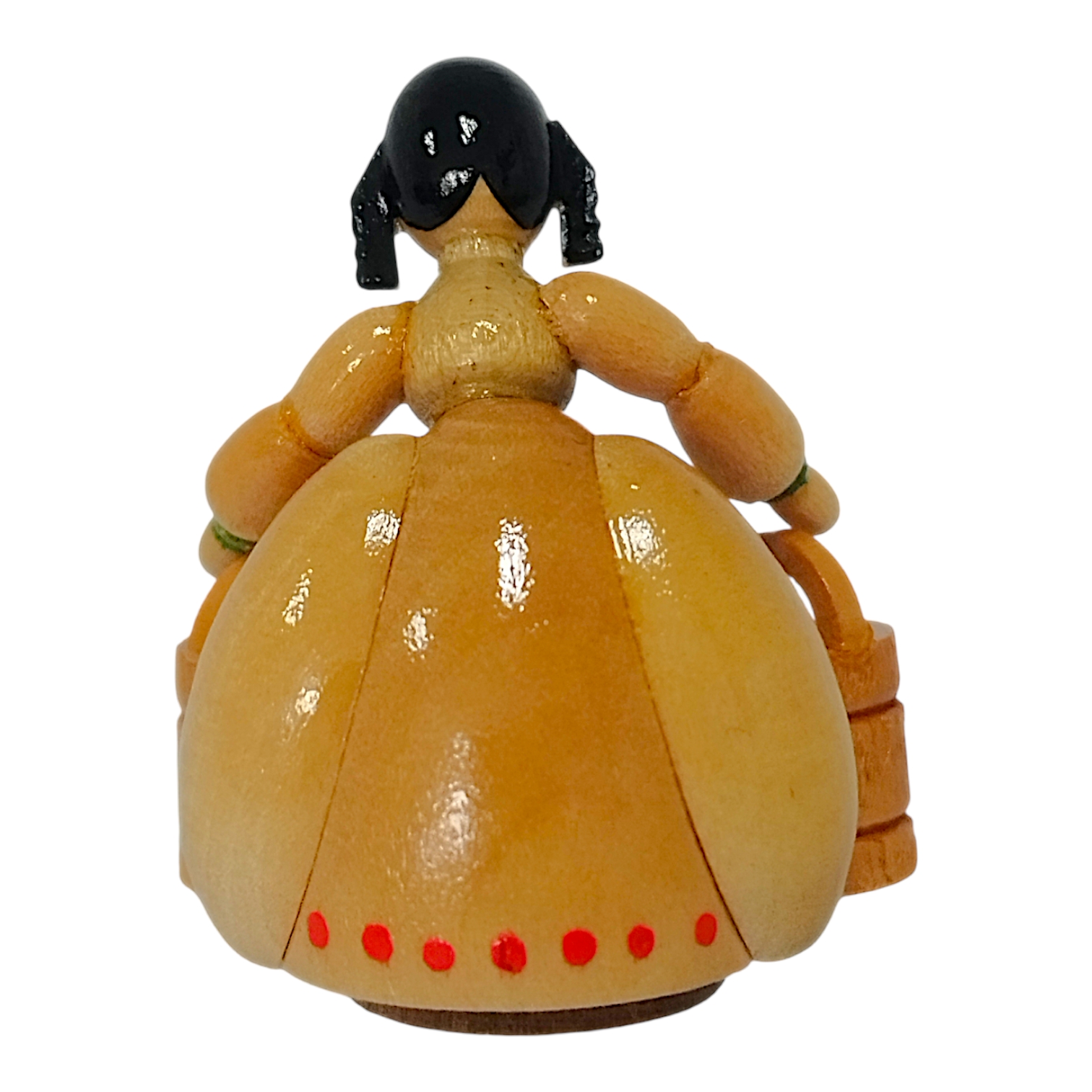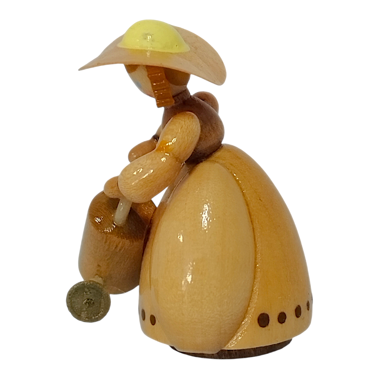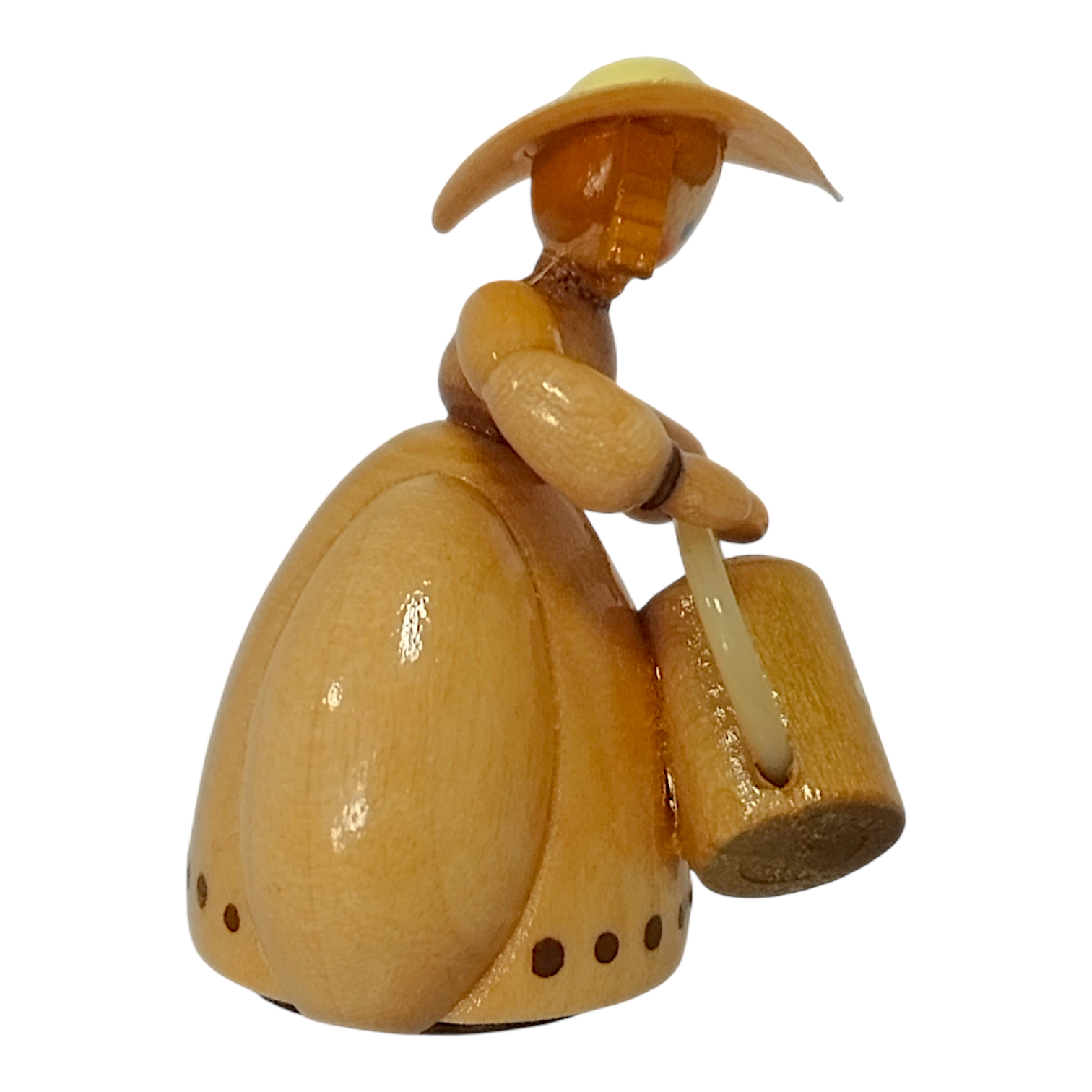Diese handgefertigten Gärtnerinnen im Biedermeierstil aus dem Hause Kremer Holzdesign bringen den Zauber eines blühenden Gartens direkt in Ihre Sammlung. Die etwa 4 cm hohen Figuren bestechen durch ihre sanfte Linienführung im klassischen Biedermeierstil. Ein weit ausgestellter, glockenförmiger Rock aus hellem Naturholz bildet das stabile Fundament dieser kunstvollen Drechselarbeit. Die feine Maserung des Holzes schimmert seidig unter der glatten, perfekt mit Klarlack lackierten Oberfläche.