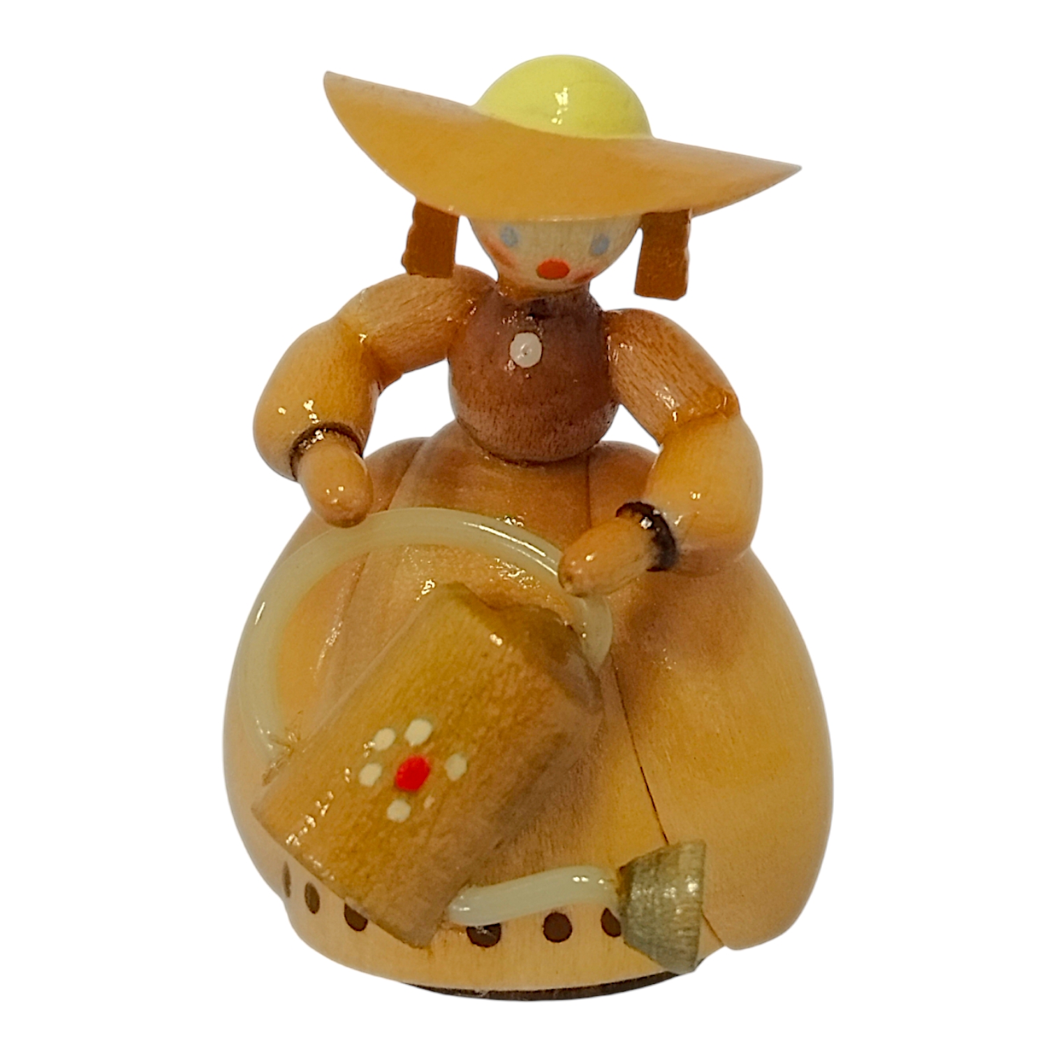 Die fleißigen Helferinnen tragen ein Oberteil in einem frischen, lebendigen Grünton. Je nach Variante halten sie ein typisches Gartenutensil wie einen kleinen Eimer oder eine feine Gießkanne in den Händen. Ein besonderes Detail dieser Serie ist die traditionsreiche Geschichte ihrer Entstehung. Die Firma Kremer übernahm die beliebten Biedermeier-Figuren von der Firma Schaarschmidt und lässt diese Traditionsfiguren so in liebevoller Handarbeit weiterleben.