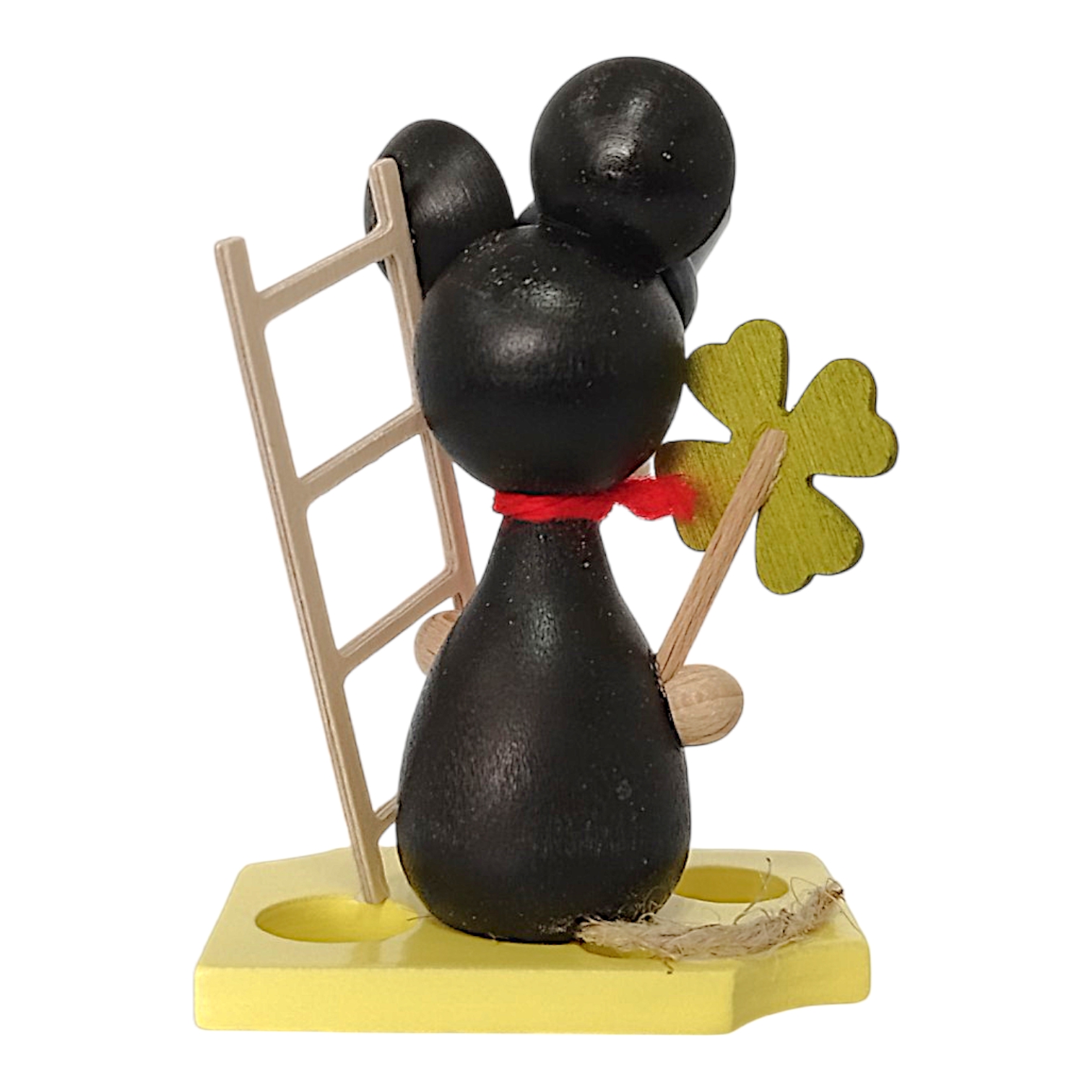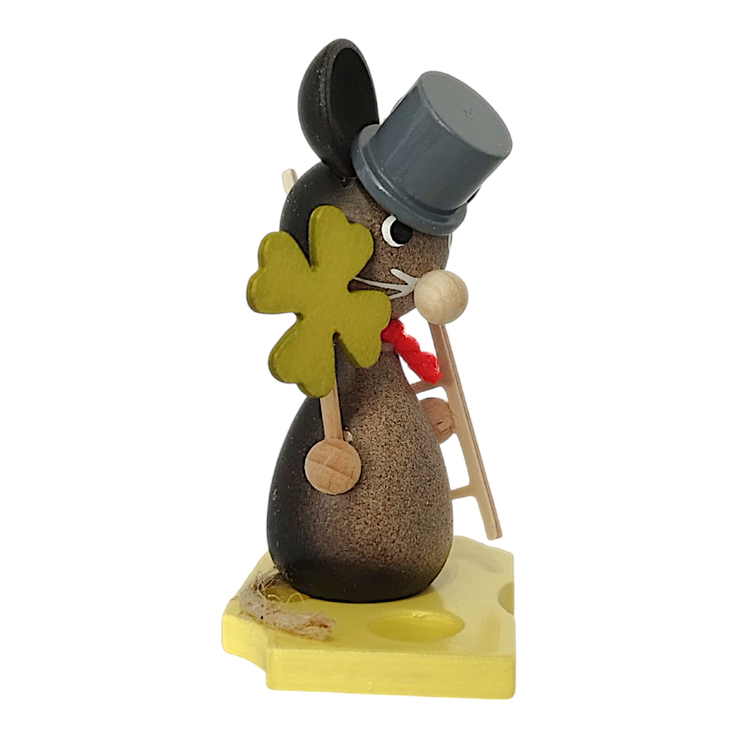 Liebevoll sowie aufwendig gestaltetes Glücksmaus aus dem Hause Ralf Zenker. Hergestellt in traditioneller Handarbeit, detailreich gestaltet und von Hand bemalt.