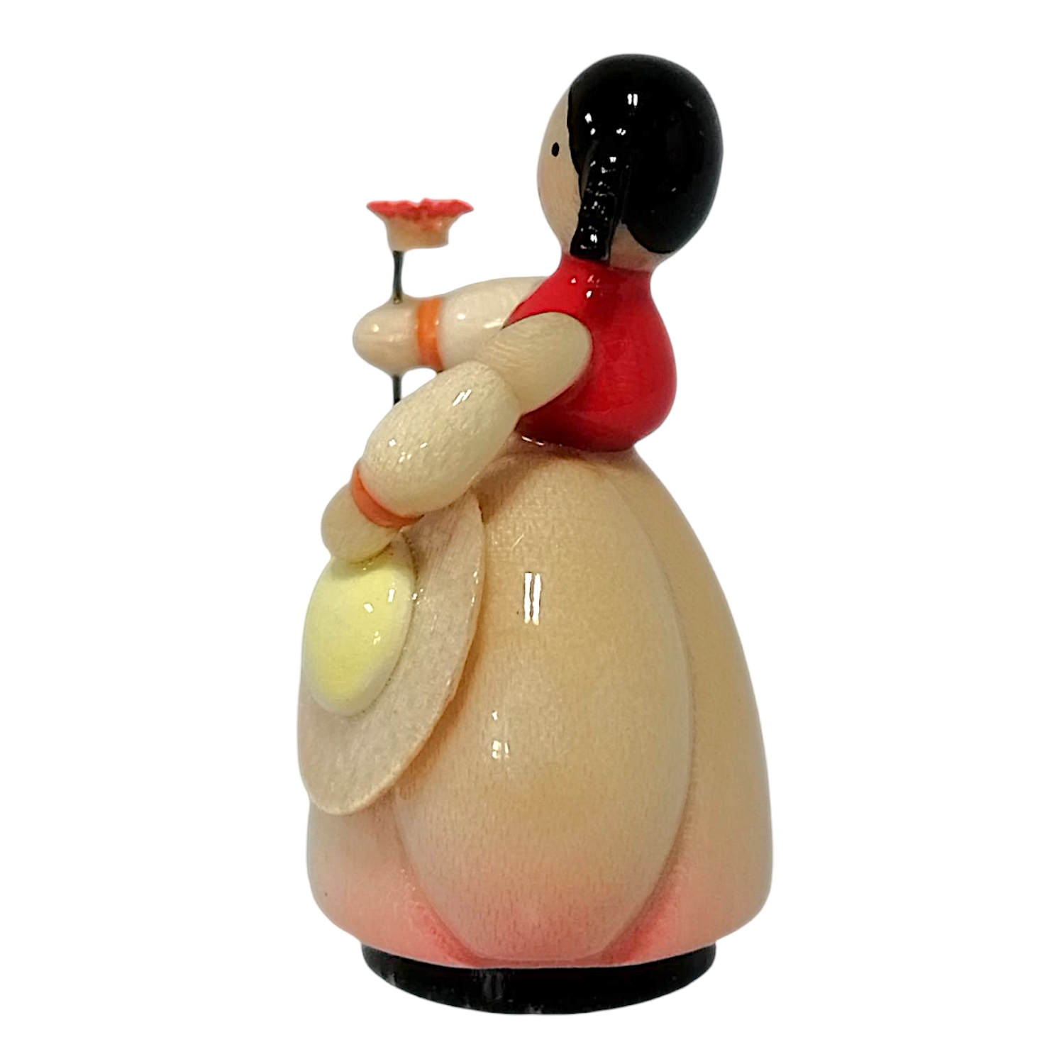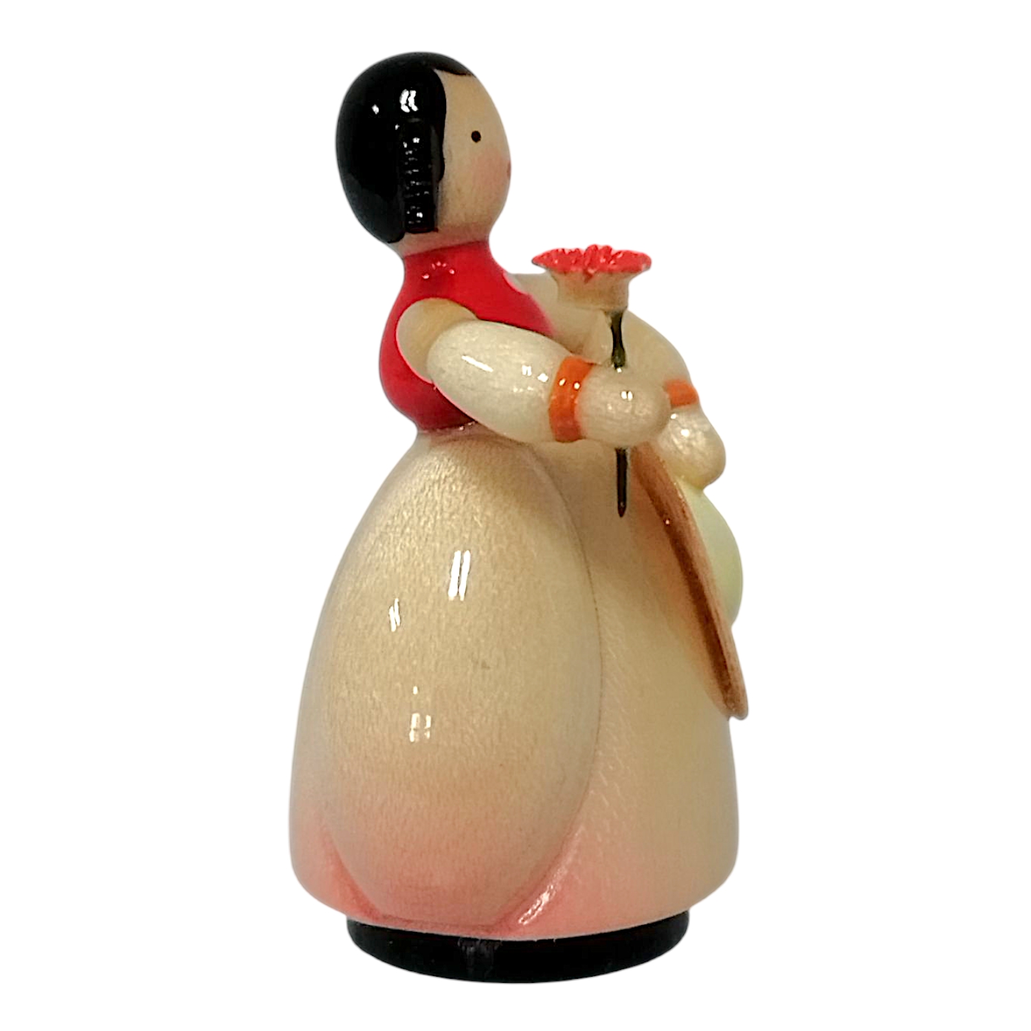 Diese Gestaltung folgt konsequent dem klassischen Biedermeier-Stil. Diese Epoche feiert das Private, die Häuslichkeit und die schlichte Schönheit des Alltags. Die Figur bringt diese behagliche Atmosphäre direkt in Ihr Zuhause. Mit einer Höhe von etwa 8 cm passt sie perfekt in jede Vitrine oder Frühlingsdekoration. Jedes Detail zeugt von der Leidenschaft der Manufaktur Kramer für traditionelle Holzbearbeitung.