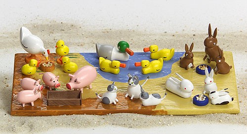 Bestehend aus 3 Kaninchen sowie einem Futternapf.