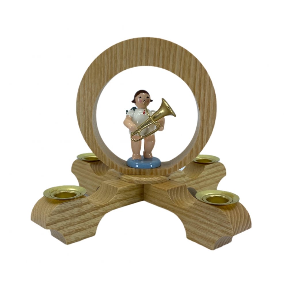 Kerzenleuchter mit Winterkind, natur dient als Ausstellungsstufe für die dazu gehörigen Engel.