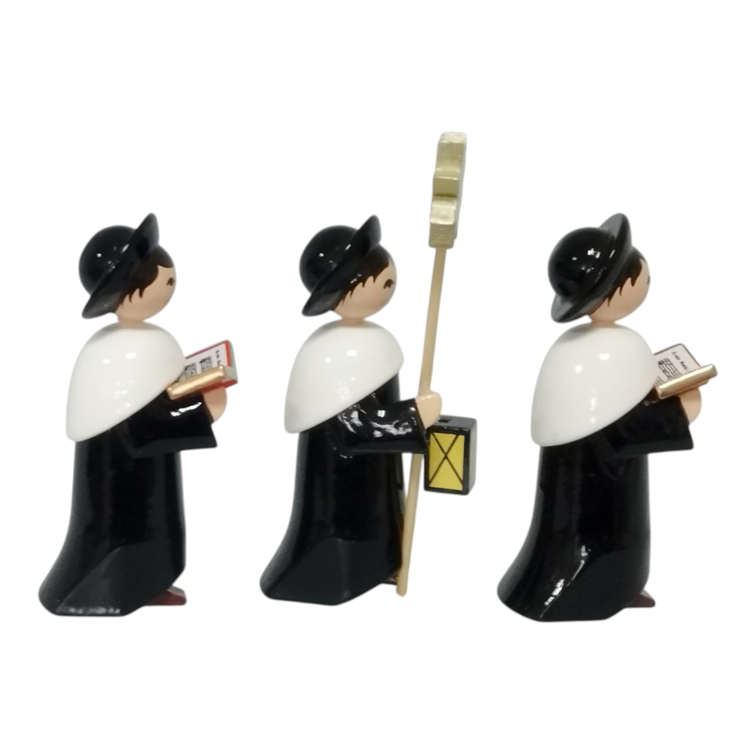Die Figuren zeichnen sich durch außerordentlich detailreiche Bemalung aus: Jeder Knopf, jede Linie im Buch und jeder Gesichtsausdruck wird mit Liebe zum Detail von Hand aufgetragen. Hochwertiger Kopallack sorgt für einen samtig-tiefen Glanz, der die Figuren besonders edel wirken lässt und zugleich die Oberfläche schützt. Die ausdrucksstarken, freundlichen Gesichter machen die Sänger lebendig und ansprechend.​