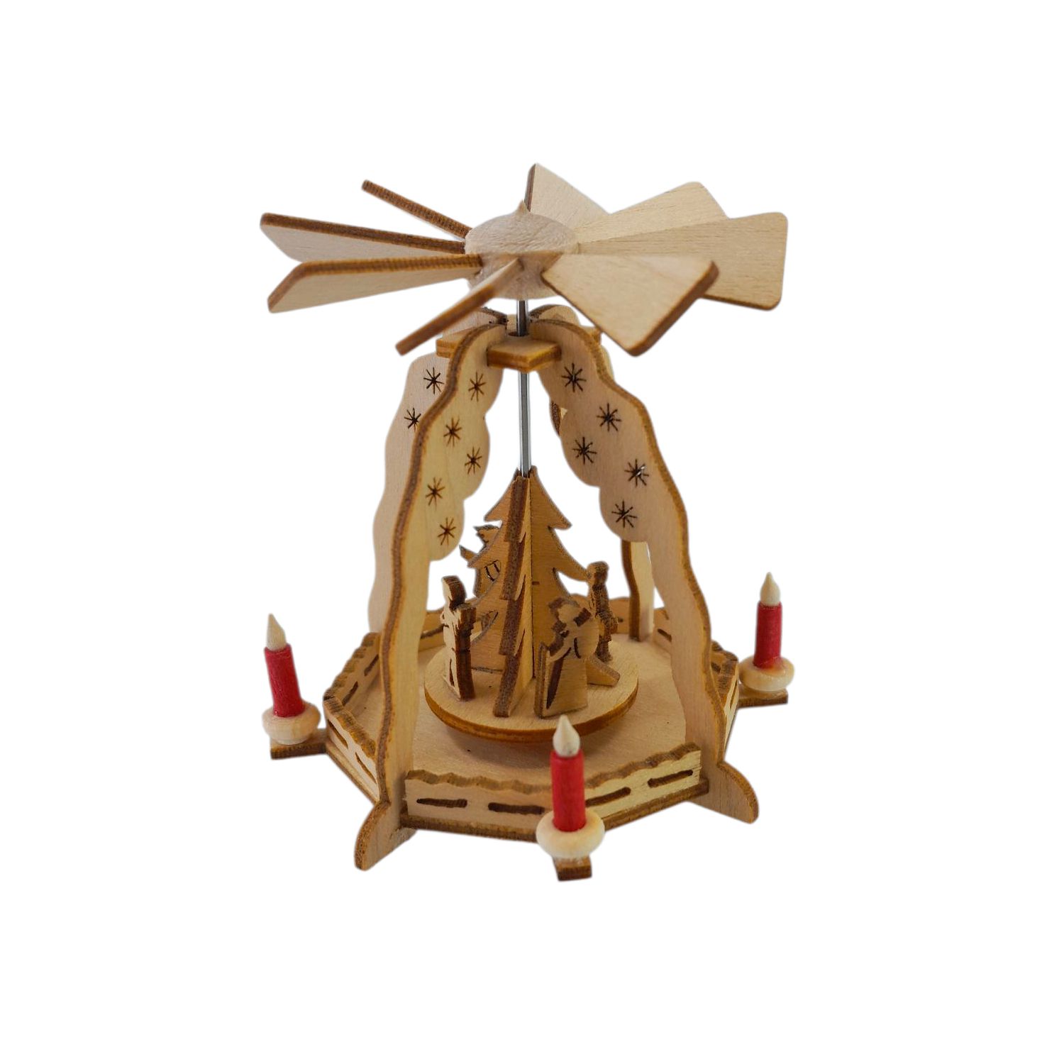 • Die Pyramiden werden durch brennende Kerzen betrieben! Achten Sie deshalb auf einen Sicherheitsabstand zu Gardinen, Möbel, Polstern und anderen brennbaren Gegenständen.