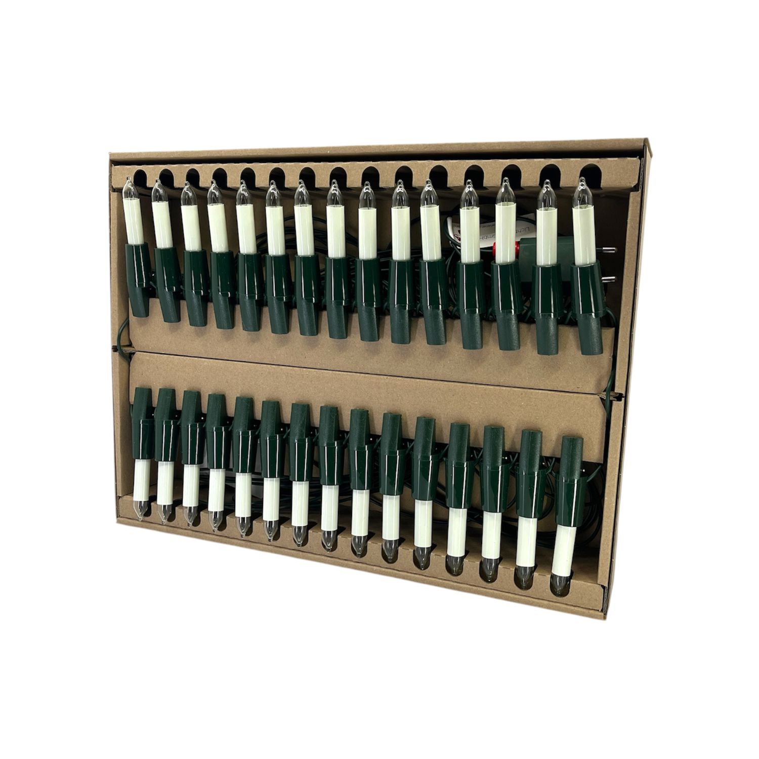 Die schlichte sowie schlanke Form der Narva Innenlichterkette mit 30 Minischaftkerzen, weiss ist in einem schlichten weiss gehalten, das sich nahtlos in jede Weihnachtsdekoration einfügt. Jede Kerze besitzt einen E10-Sockel in Tannengrün sowie eine Leistung von 3 Watt. Die elfenbeinfarbenen, klaren Lampen sorgen für ein warmes und angenehmes Licht, das eine festliche Atmosphäre schafft. Zwei Ersatzlampen sind im Lieferumfang enthalten, um bei Ausfällen sofort für Ersatz sorgen zu können.
