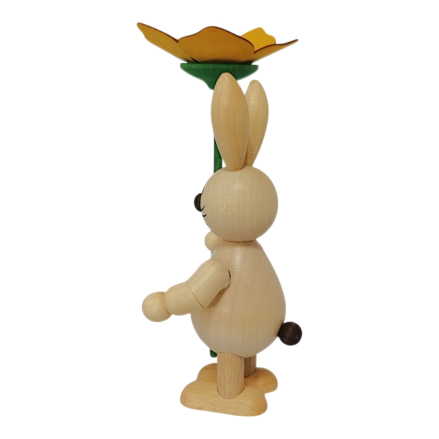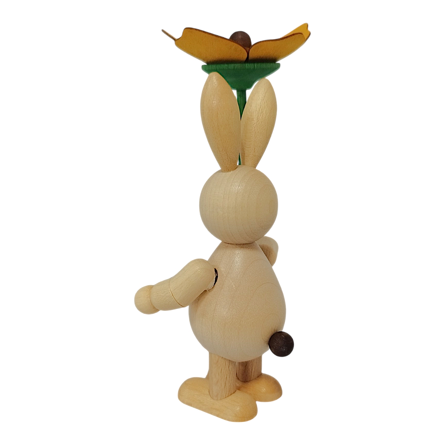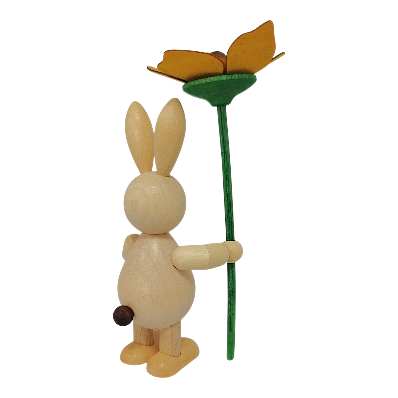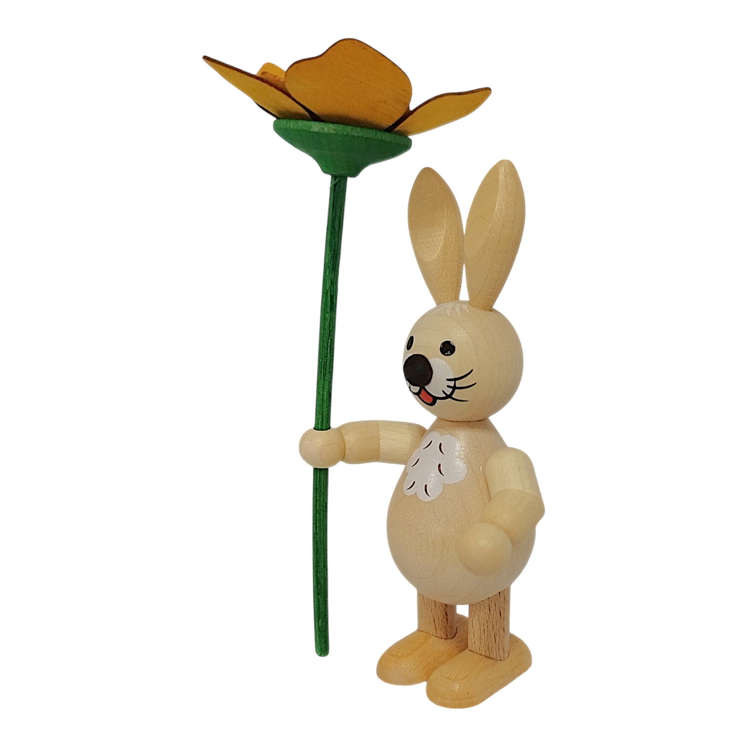 Neues aus dem Hasenland: Dieser charmante Osterhase mit Blume wird in liebevoller sowie detailreicher Handarbeit von der Drechslerei Volkmar Wagner hergestellt. Die freundlichen und stets gut gelaunten Osterhasen der Drechslerei gibt es in allen Lebenslagen, sie bringen die traditionelle Handwerkskunst des Erzgebirges direkt zu dir nach Hause.