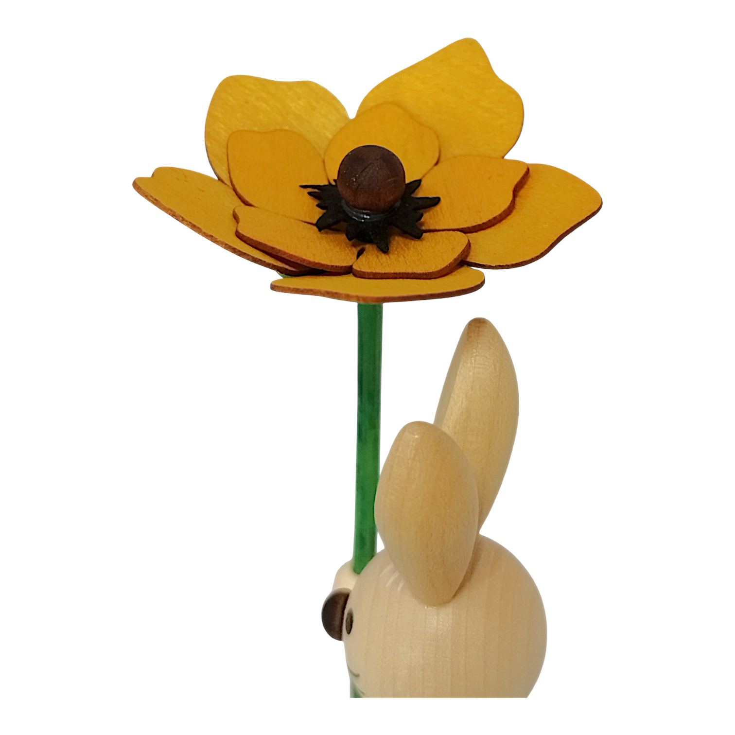 Mit dem kräftigen grünen Stiel und den weit geöffneten Blütenblättern wirkt es fast so, als hätte er gerade die schönste Pflanze auf der Frühlingswiese für dich gepflückt. Die feine Maserung des naturbelassenen Holzes verleiht ihm eine besonders warme und hochwertige Ausstrahlung, die in jeder Dekoration eine gute Figur macht. Dank ihrer hübschen Verpackung eignen sich diese kleinen Osterhasen auch hervorragend als liebevolles Geschenk für einen besonderen Menschen.