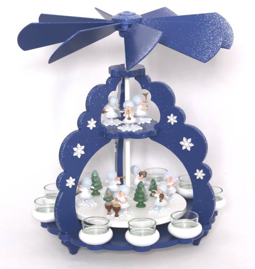 Diese wunderschöne Teelicht Pyramide Schneeflöckchen mit Bestückung, Instrumente, mit zwei Etagen wird wie alle Schneeflöckchen auch seit 2014 im Hause Kuhnert hergestellt.