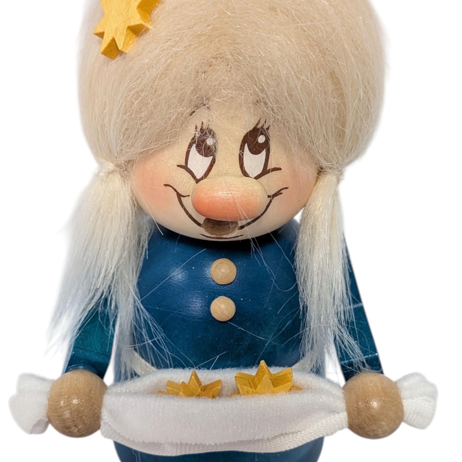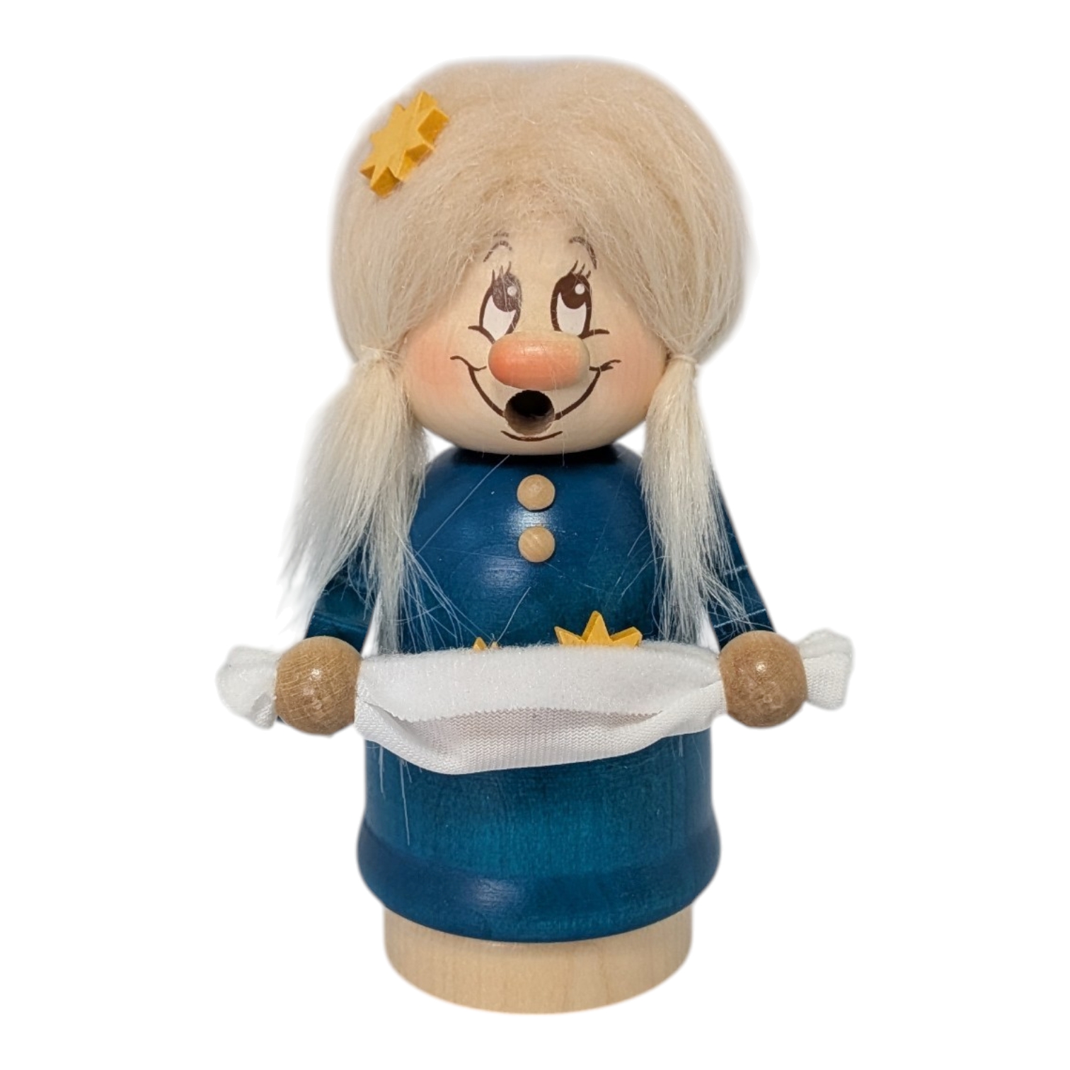 Der Räuchermann Miniwichtel Sterntaler ist eine liebevolle Hommage an das berühmte Mädchen aus einem der bekanntesten Märchen der Gebrüder Grimm. Mit ihrem einzigartigen Aussehen und ihrer warmherzigen Persönlichkeit ist sie eine bezaubernde Ergänzung für Ihre Weihnachtsdekoration und erinnert uns daran, dass Güte und Großzügigkeit immer belohnt werden.