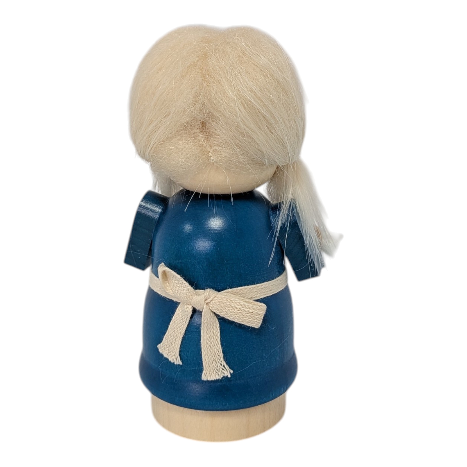 Heute trägt sie ihre kostbaren Sterne behutsam auf einem weißen Tuch und hält sie liebevoll in ihren kleinen Händen. Sterntaler ist ein unverwechselbares Mädchen mit einem goldenen Stern im hellen, flauschigen Haar. Ihr blaues Kleid mit den hübschen Knöpfen und der weißen Schürze verleihen ihr ein freundliches und aufgewecktes Erscheinungsbild, das zum Strahlen des Sternenhimmels passt.