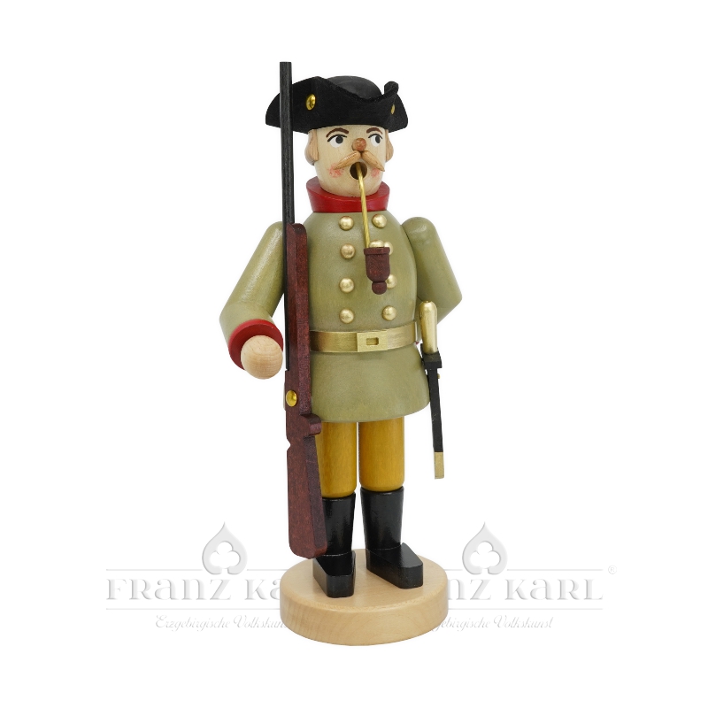 Der Räuchermann Preußischer Jäger ist eine charaktervolle Räucherfigur aus der Werkstatt von Franz Karl. Diese Figur ist mit viel Liebe in traditioneller Handarbeit gefertigt und anschließend detailreich von Hand bemalt, um den Stolz und die Tradition historischer Uniformen einzufangen.